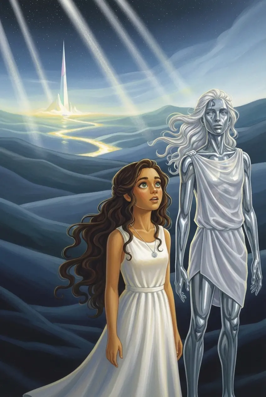 —¿Por qué todo se desvanece? —preguntó Ámina al vacío. Una figura surgió entre los velos de sombra, caminando con una gracia que recordaba al fluir del agua. Era Mirari, un ser rodeado de reflejos plateados que parecía sostener toda la calma del mundo en su mirada serena.